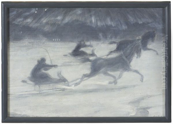 Sleighing on the Ice. Illustration for a Short Story by Per Hallstrom