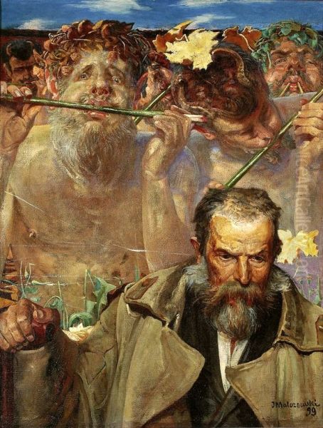 The painting Story of a Song – Portrait of Adam Asnyk by Jacek Malczewski is a mesmerizing blend of symbolism and portraiture, embodying the artist’s signature dreamlike aesthetic. Created in 1907, the work depicts the Polish poet Adam Asnyk surrounded by ethereal, almost ghostly figures that seem to emerge from the mist, suggesting the intangible nature of poetic inspiration. Malczewski’s masterful use of muted, earthy tones contrasted with delicate luminescence creates an atmosphere of introspection and mysticism. As a leading figure of the Young Poland movement, Malczewski infused his works with allegorical depth, and this painting is no exception, reflecting the intersection of literature and visual art in late 19th- and early 20th-century Polish symbolism. Its historical significance lies not only in its portrayal of a cultural icon but also in its representation of the artist’s preoccupation with existential themes, making it a cornerstone of Central European Symbolist art.
