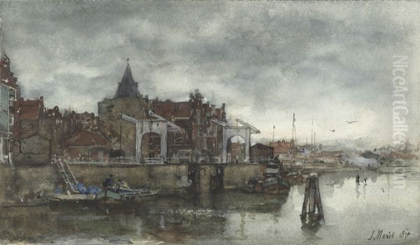 Jacob Maris' Die Buitenkant mit dem Schreierstoren in Amsterdam captures the serene yet evocative essence of 19th-century Amsterdam with a masterful blend of realism and atmospheric impressionism. Painted during the Hague School movement, the work depicts the iconic Schreierstoren (Weepers' Tower) alongside the tranquil waterfront, bathed in soft, diffused light. Maris' brushwork oscillates between precise architectural detail and loose, moody strokes in the sky and water, creating a poetic harmony between man-made structures and nature. The muted palette of grays, blues, and earth tones evokes a timeless, almost melancholic nostalgia, characteristic of Dutch Golden Age influences reinterpreted through a modern lens. As a pivotal figure in the Hague School, Maris bridged traditional Dutch landscape painting and emerging impressionistic techniques, making this work significant for understanding Northern European art's transition into modernity. The painting's historical authenticity—rendering one of Amsterdam's oldest defensive towers—combined with its emotional depth, secures its status as a benchmark of 19th-century urban landscape art.