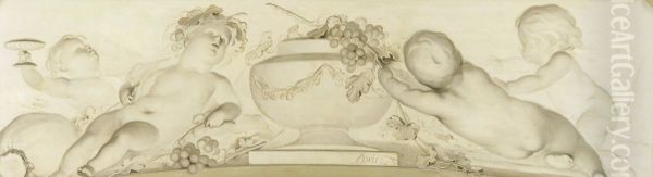 The autumnal splendor of Jacob de Wit's De herfst (The Autumn) radiates with Baroque theatricality, capturing the season’s bounty through exuberant allegory. Painted circa 1730–1740, this grisaille masterpiece—rendered entirely in nuanced shades of gray—showcases de Wit’s virtuosity in trompe l’oeil, mimicking sculptural reliefs typical of Dutch interior decoration. Set against a fictive stone backdrop, plump putti gleefully harvest grapes and grain, their cherubic forms cascading in rhythmic harmony. As a leading figure of the Dutch Rococo, de Wit revolutionized ceiling and overdoor paintings, blending Italianate grandeur with Northern precision. De herfst exemplifies his role in transitioning ornamental art from heavy guildwork to illusionistic lightness, securing his legacy as a bridge between Rubens’ dynamism and Neoclassical restraint.