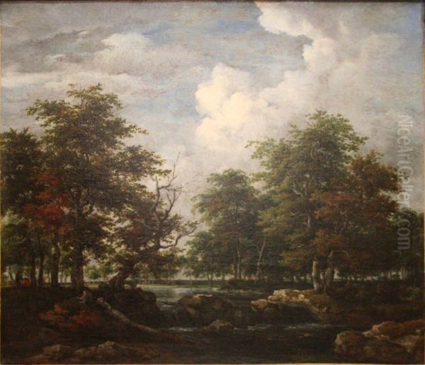 Jacob van Ruisdael’s Cascade dans un bois de chenes (Cascade in an Oak Wood) is a breathtaking 17th-century Dutch landscape that captures nature’s raw power and serene grandeur. The painting, likely created in the 1650s, depicts a dramatic waterfall cascading through an ancient oak forest, with gnarled trees and moss-covered rocks framing the scene. Ruisdael’s expert use of light and shadow creates a striking contrast between the foaming water and the dark, weathered woodlands—heightening the sense of movement and mystery. As a leading figure of the Dutch Golden Age, Ruisdael elevated landscape painting into a major artistic genre, blending realism with poetic atmosphere. This work exemplifies his mastery of naturalistic detail and emotional depth, making it a crucial piece in understanding Baroque landscape art and its influence on later Romantic traditions.