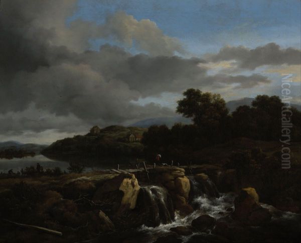 Jacob van Ruisdael’s Landscape with Cascade epitomizes the sublime power of Dutch Golden Age landscape painting, capturing nature’s untamed grandeur with breathtaking precision. The painting immerses viewers in a dramatic woodland scene, where a roaring waterfall crashes over moss-covered rocks, surrounded by dense foliage and towering, windswept trees. Ruisdael’s meticulous brushwork renders every detail—from the play of light on turbulent water to the textured bark of ancient oaks—infusing the scene with a raw, almost mystical energy. Painted around 1660–70, this work reflects Ruisdael’s mature style, blending realism with poetic melancholy, a hallmark of his influence on Romantic landscapes centuries later. As one of the most prolific landscapists of his time, Ruisdael elevated the genre beyond mere topography, conveying emotion and symbolism through nature’s rhythms. Landscape with Cascade stands as a testament to his legacy, bridging the Dutch Baroque tradition and the transcendental landscapes of later artists like Turner and the Hudson River School.