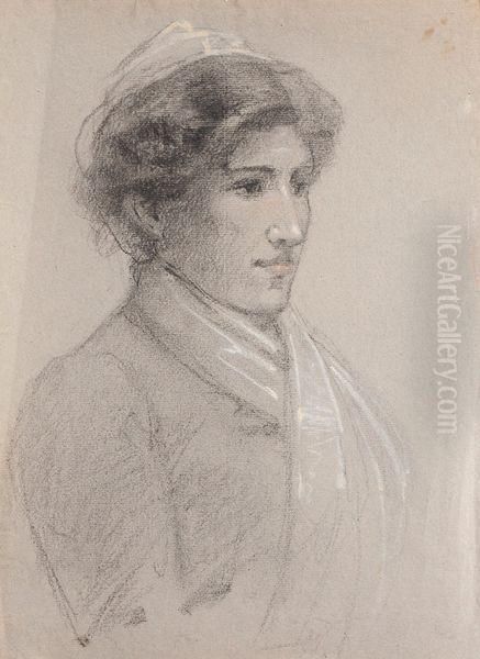 Ensemble De Trois Dessins Au Fusain Et Pastel Sur Papier, Representant Des Femmes
