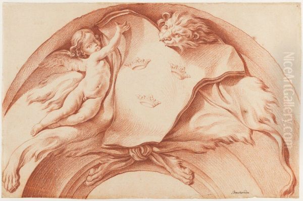 The Coat of Arms of Sweden Held by a Lion and a Genius
