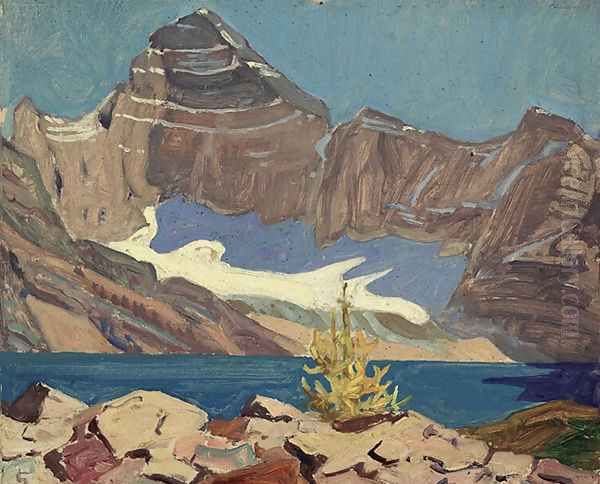 James Edward Hervey MacDonald's Lake McArthur is a mesmerizing oil painting that captures the sublime beauty of the Canadian Rockies. Executed in MacDonald's signature Post-Impressionist style blended with elements of the Group of Seven’s bold modernism, the piece radiates with vibrant brushstrokes and a rich, expressive color palette. The painting depicts the glacial waters of Lake McArthur shimmering beneath towering peaks, where intense blues and greens contrast with warm earth tones—an ode to Canada’s untouched wilderness. Created during MacDonald’s travels in the 1920s–30s, this work exemplifies his mastery in translating emotional awe into visual form, bridging European influences with distinctly Canadian subjects. As a founding member of the Group of Seven, MacDonald helped redefine the nation’s artistic identity, making Lake McArthur not just a landscape but a cultural milestone celebrating the raw grandeur of the natural world.