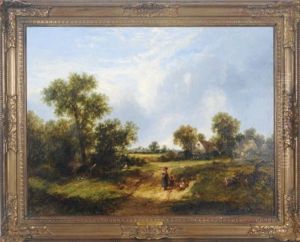 Harvesters Before A Cottage In An Extensive Summer Landscape