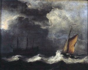 Nocturnal Scene With French And American Ships On Stormy Sea