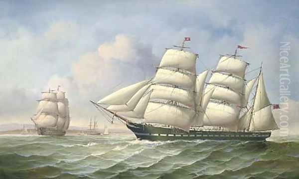 James Hardy Jnr’s Shipping Vessels by Moonlight is a mesmerizing maritime scene that captures the tranquil yet dramatic interplay of light and shadow under a moonlit sky. Painted in the 19th century, Hardy, a British artist renowned for his marine and landscape works, masterfully depicts ships gently swaying on reflective waters, their silhouettes softened by the ethereal glow of the moon. The painting exudes a sense of serene mystery, blending Romanticism’s emotional depth with the meticulous detail characteristic of maritime art of the era. Hardy’s adept use of chiaroscuro enhances the atmospheric mood, making it a standout piece within British marine painting. Though not as widely celebrated as Turner or Constable, Hardy’s works, including this one, hold significance for their technical precision and evocative portrayal of nature’s quiet grandeur, offering viewers a lyrical escape into nocturnal seascapes.