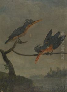 Two Kingfishers beside a Lake