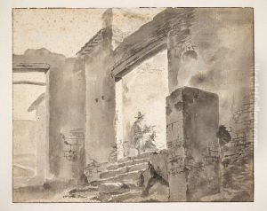 An Italianate Landscape With A Moorish Rider Conversing With A Shepherdess Resting On The Roadside, A Ruined Roman Aqueduct Beyond