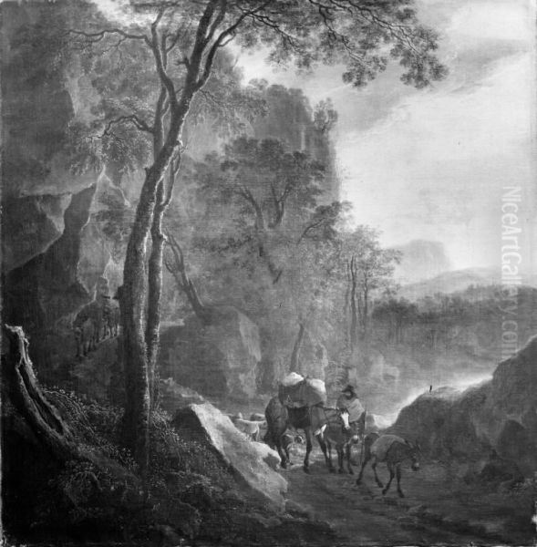 Southern Landscape by Jan Both sweeps viewers into a golden-hued pastoral dream, where Italianate sunlight bathes rolling hills, distant mountains, and wandering travelers in an amber glow. Created around 1640–1652 during the artist’s Roman sojourn, this Dutch Golden Age masterpiece fuses northern precision with Italian luminosity—a hallmark of the "Italianate landscape" movement Both pioneered alongside Claude Lorrain. The painting’s theatrical staging of nature, with its repoussoir trees framing sun-dappled vistas, revolutionized landscape painting by elevating it from mere background to poetic narrative. Now housed in the National Gallery, London, it remains a touchstone for understanding how Dutch artists romanticized the Mediterranean while retaining their meticulous brushwork and atmospheric depth. The harmony between idealized nature and human presence reflects Both’s unique ability to balance realism with escapism.