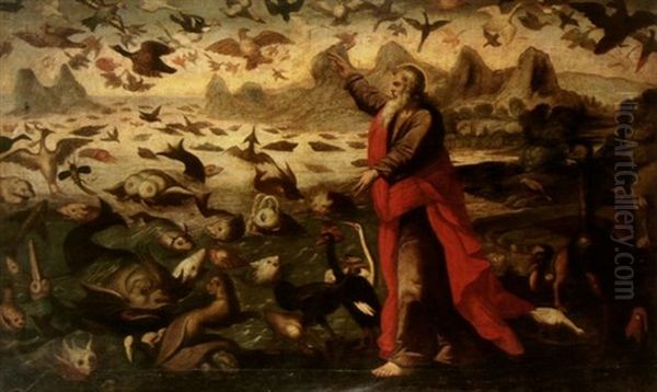 Jan Brueghel the Elder's Creation of the Fishes and the Birds (c. 1617–1618) is a dazzling celebration of divine creation, teeming with vitality and intricate detail. The painting, a collaboration with fellow Flemish master Hendrick de Clerck, depicts a lush Edenic landscape where exotic birds take flight and shimmering fish leap from crystalline waters. Brueghel’s meticulous brushwork captures the iridescence of feathers and scales, while the composition balances chaos and harmony—a hallmark of his Baroque style. The work reflects his fascination with naturalism and allegory, blending religious narrative with encyclopedic depictions of flora and fauna. As a key figure in the Flemish tradition and a court painter to Archduke Albert VII, Brueghel elevated still-life and landscape genres, making this piece a jewel of early 17th-century European art. Its scientific precision and poetic luminosity position it as a bridge between Renaissance curiosity and Baroque drama.