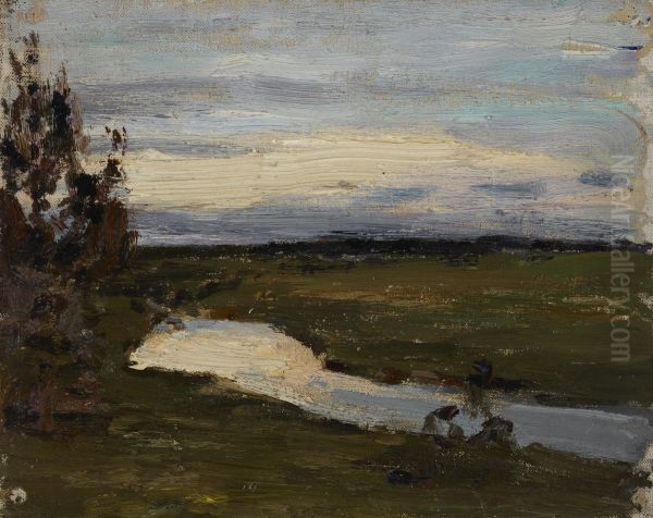 Jan Ciaglinski’s A River at the White Night captivates with its dreamy, poetic atmosphere, where soft moonlight dances on tranquil water under an ethereal twilight sky. Painted in the late 19th or early 20th century, this work embodies Ciaglinski’s mastery of mood and light, blending Impressionist brushwork with a Symbolist’s introspective tone. The palette—cool blues, silvery greys, and muted greens—evokes a hushed, almost mystical stillness, as if nature itself holds its breath. Though less widely known than his peers, Ciaglinski’s works, like this one, occupy a unique niche in art history, bridging Romanticism’s emotive landscapes and Modernism’s evolving abstraction. The painting’s quiet luminosity invites viewers into a meditative space, a hallmark of his oeuvre.
