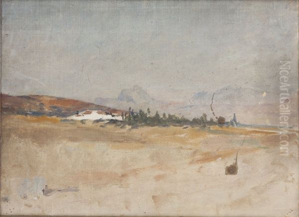 "Antequera" by Jan Ciaglinski (1903) is a luminous impressionist landscape that captures the serene beauty of the Spanish town under soft, diffused light. Ciaglinski, a Polish painter influenced by French Impressionism, renders the scene with loose, expressive brushstrokes and a delicate interplay of warm and cool tones—ochres and blues meld to evoke the sun-drenched tranquility of Andalusia. The painting reflects his mastery of plein air techniques, blending atmospheric depth with vivid yet harmonious color contrasts. Though less renowned than Monet or Pissarro, Ciaglinski’s work is a fine example of Eastern European artists’ engagement with Western modernism. "Antequera" stands out for its poetic ambiguity, straddling realism and fleeting impressionistic moments, making it a subtle gem in early 20th-century European art.