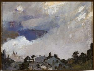 Jan Ciaglinski's The Himalayas. From the Journey to India captures the majestic grandeur of the mountain range with a dreamlike serenity. Painted during his travels in India, the work embodies Ciaglinski’s lyrical realism, blending precise composition with soft, atmospheric brushwork. The Himalayas rise dramatically yet gracefully, bathed in a luminous haze that suggests both distance and reverence. Earthy tones and cool blues evoke the sublime tranquility of nature, reflecting the 19th-century European fascination with exotic landscapes. Ciaglinski, a Polish-Russian artist influenced by the Barbizon School, bridges Romanticism and Impressionism—his works are celebrated for their poetic realism and emotive use of light. Though less renowned than his contemporaries, this piece exemplifies his unique ability to merge topographical accuracy with an almost spiritual mood, offering viewers a meditative escape.