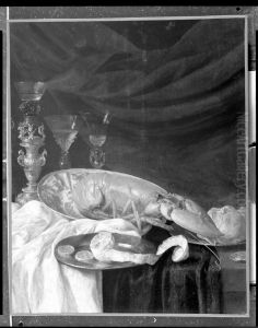 For a striking decorative statement, A Still Life with Lobster and Fruit works beautifully in a dining room or study, where its lavish theme complements traditional or classic interiors. Opt for a wall with warm, neutral tones—deep burgundy, olive, or cream—to harmonize with the painting’s rich colors. A gilded or dark wood frame will enhance its Baroque grandeur, while balanced lighting (such as a spotlight or adjacent sconces) will amplify its luminous details. Given the work’s typical size (around 100 x 140 cm), hang it as a focal point above a sideboard or fireplace to command attention without overwhelming the space. Pair it with lush textiles like velvet or silk, and avoid cluttered surfaces to let the artwork’s intricate still life shine. In offices, it lends sophistication to executive spaces, inspiring creativity and a connection to art historical elegance.