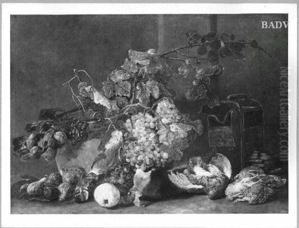 Jan Fyt’s still-life paintings are vibrant celebrations of abundance and meticulous detail, embodying the Flemish Baroque tradition with unparalleled skill. His compositions often feature lavish displays of hunted game, ripe fruits, and delicate flowers, each element rendered with astonishing realism and tactile richness. Golden light bathes the scene, casting dramatic shadows and highlighting the textures of fur, feathers, and glass. As a pupil of Frans Snyders, Fyt mastered the dynamism of 17th-century still-life, infusing his work with a sense of movement—curling leaves, tumbling grapes, or the lifelike presence of birds and dogs. These works reflect the era’s fascination with nature’s bounty and vanitas symbolism, where beauty coexists with mortality. Fyt’s artistry elevated still-life from mere decor to a profound exploration of light, texture, and composition, securing his place among the greats of Flemish painting.