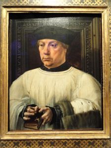 Portrait Of A Nobleman In A Grey Fur-lined Coat Over A Black Costume And A Black Hat With Pilgrim Signs
