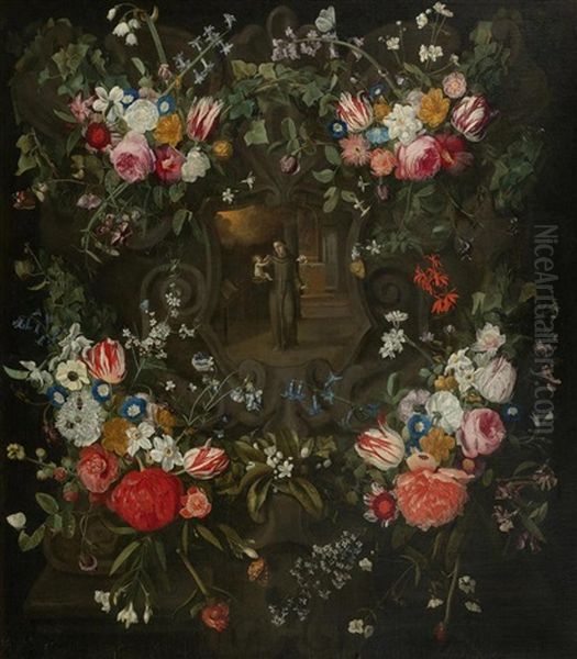 Heiliger Antonius Mit Christuskind Im Blumenkranz Oil Painting by Jan Philip van Thielen