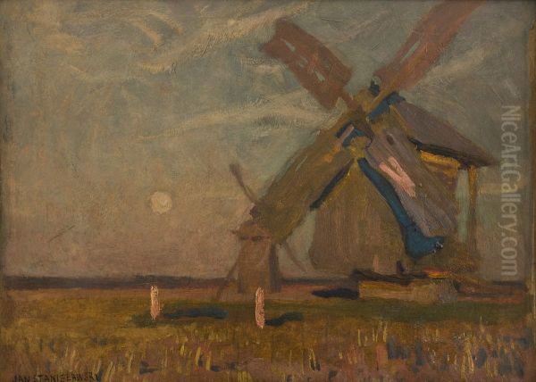 Jan Stanislawski’s Landscape with Windmills is a vibrant testament to the artist’s mastery of mood and light in landscape painting. Created around the turn of the 20th century, this work exemplifies Stanislawski’s impressionistic approach, blending loose, expressive brushstrokes with a rich, atmospheric palette. The scene captures windmills set against a rolling countryside, bathed in warm, dappled sunlight, evoking a sense of tranquility and rustic charm. Stanislawski, a key figure in Polish modernism, was deeply influenced by French Impressionism yet infused his work with a distinct Central European sensibility. This piece stands as a bridge between traditional landscape painting and modernist experimentation, reflecting his role in revitalizing Polish art during a period of cultural renaissance. The painting’s dynamic composition and emotional depth make it a celebrated example of his oeuvre, offering viewers a glimpse into the pastoral beauty that inspired much of his work.