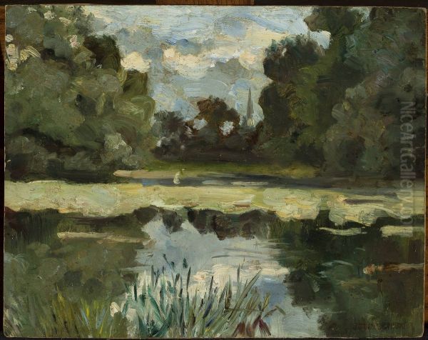 Jan Stanislawski's "Park Landscape with a Pond" is a captivating example of Polish Impressionism, radiating a serene yet vibrant energy. Painted in the late 19th or early 20th century, the work showcases Stanislawski's mastery of light and color, with dappled sunlight filtering through lush foliage and reflecting off the tranquil pond. The composition balances natural spontaneity with careful structure—loose, expressive brushstrokes evoke the rustling of leaves and the shimmer of water, while the harmonious palette of greens, blues, and earthy tones creates a dreamy, pastoral mood. As a key figure of the Young Poland movement, Stanislawski bridged realism and modernism, influencing Central European landscape painting. This piece epitomizes his ability to transform mundane scenery into poetic visual hymns, securing his legacy as a pioneer of Polish plein air painting.