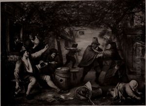 A Terrace With A Couple Dancing To A Pipe And Fiddle, Peasants Eating And Merrymaking Behind [engraved By Milius, Paris, Published By 1876.]