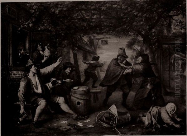 Jan Steen’s Peasants Quarrelling over Cards in an Arbour bursts with lively chaos, capturing a moment of raucous disagreement among villagers gathered in a rustic garden setting. Painted circa 1665–1670 during the Dutch Golden Age, this masterpiece exemplifies Steen’s knack for genre scenes—humorous, moralizing vignettes of everyday life. The composition brims with animated gestures, flushed faces, and disarrayed cards, rendered in Steen’s signature loose brushwork and warm earthy palette. His work stands as a social commentary, blending satire with keen observation of human folly, a hallmark of 17th-century Dutch realism. While less formally grandiose than contemporary history paintings, Steen’s scenes offer invaluable insights into period culture, cementing his status as a storyteller of vernacular life.
