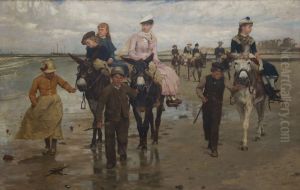 Jan Verhas' The Master Painter (1884) captivates with its luminous realism and tender portrayal of artistic mentorship. Set in a sunlit studio, the painting depicts a young boy intently watching an elder painter at work, their shared focus radiating quiet reverence. Verhas, a leading Belgian Academic painter, masterfully renders textures—the gleam of brass vessels, the softness of fabrics—while suffusing the scene with warmth through his signature golden palette. This work exemplifies 19th-century Academicism’s technical precision fused with bourgeois domesticity, bridging Renaissance workshop traditions with modern intimate narratives. Its enduring significance lies in democratizing the artist’s mystique, presenting creativity as both ordinary discipline and sacred calling—a nuance that influenced later Realist and Impressionist approaches to quotidian artistry.