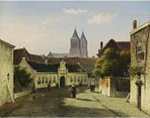 A View Of The St. Catherine Hospital In The Beekstraat In Arnhem, With The Walburg Church In The Background