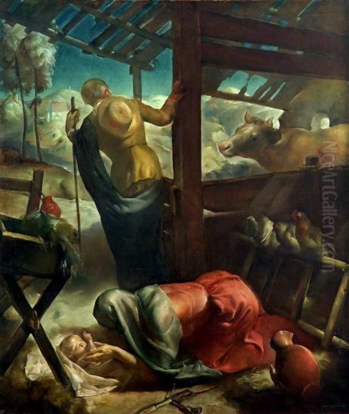 For display, Boze Narodzenie would thrive in a cozy, wood-accented interior—think a rustic dining room, a study with leather furnishings, or even a tranquil office space seeking warmth. Its earthy palette (burnt sienna, olive greens, and creamy whites) pairs beautifully with natural materials like linen, aged brass, or dark walnut frames. A mid-sized canvas (around 24x36 inches) would allow its details to shine without overwhelming the space. Flank it with wrought-iron sconces or place it above a sideboard adorned with ceramics to enhance its folk charm. In modern settings, let it anchor a neutral wall, balanced by minimalist decor to avoid visual clutter. The painting’s nostalgic aura makes it ideal for spaces meant for reflection or gathering, where its quiet elegance can spark conversation and comfort alike.