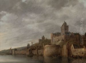A View Of Arnhem From The South With A Ferry And Shipping On Therhine In The Foreground