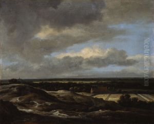 Jan van Goyen’s A River Landscape (c. 1650s) captures the serene yet dynamic essence of Dutch rural life in the Golden Age. The painting depicts a vast, cloud-studded sky mirrored in tranquil waters, with small boats and figures dotting the shoreline, creating a harmonious balance between humanity and nature. Van Goyen’s trademark use of muted earth tones—ochres, browns, and soft grays—lends the scene a luminous, almost poetic quality, while his loose brushwork imbues it with immediacy and movement. As a pioneer of the tonal landscape style, Van Goyen rejected idealized grandeur in favor of humble, everyday vistas, influencing generations of Dutch artists. This work exemplifies his mastery of atmosphere and spatial depth, securing his legacy as a key figure in 17th-century European landscape painting.