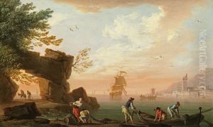 Jan van Goyen’s An Estuary Scene With Small Vessels In A Choppy Sea captures the raw energy of Dutch coastal life in the 17th century, blending atmospheric realism with poetic drama. The painting immerses viewers in a windswept estuary, where small boats battle turbulent waves under a brooding, cloud-streaked sky. Van Goyen’s signature muted palette—dominated by earthy browns, silvery grays, and subtle ochres—creates a sense of fleeting light and movement, characteristic of the Dutch Golden Age’s tonal landscape style. As a master of economical brushwork, he balances detail with suggestion, evoking the salt-sprayed air and the precariousness of maritime labor. This work exemplifies his pivotal role in transitioning from Mannerist grandeur to humble, everyday scenes, influencing later realist and Impressionist movements. Its historical value lies in documenting Dutch maritime culture while embodying the era’s fascination with nature’s sublime power.