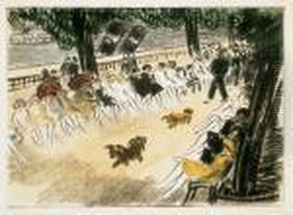 Janos Vaszary’s The Promenade On The Embankments Of The Danube captures the leisurely elegance of early 20th-century Budapest, blending post-impressionist vibrancy with a distinctly Central European sensibility. The painting depicts figures strolling along the Danube’s banks, bathed in soft, dappled light that reflects off the water, evoking a dreamy, cosmopolitan atmosphere. Vaszary, a key figure in Hungarian modernism, bridges academic tradition and avant-garde experimentation—his loose brushwork and luminous palette recall the influence of French plein air painting, while the composition’s lyrical rhythm is uniquely his own. Created during a period of cultural flourishing in Hungary, the work embodies the optimism of urban life before the upheavals of World War I. Today, it holds significance as a testament to Budapest’s golden age and Vaszary’s role in shaping Central European modern art.