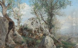Strandparti Med I Forgrunden Store Sten, Antagelig Arhusbugten