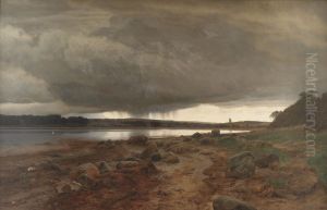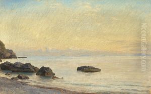 Janus la Cour: Kystparti med sollys, der spejler sig i det stille hav