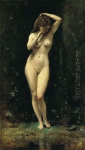 Jean-Baptiste Camille Corot's Diana Bathing (The Fountain) (c. 1869–70) is a poetic fusion of mythological elegance and atmospheric landscape painting. The work depicts the Roman goddess Diana, bathing with her nymphs in a lush, dreamlike forest glade, where dappled light filters through the foliage onto the tranquil water. Corot masterfully blends classical subject matter with his signature plein-air sensibility, creating a harmonious balance between idealized figures and the natural surroundings. Painted during his late career, the piece showcases his mature style—soft brushwork, muted greens, silvery tones, and a delicate interplay of light that bridges Neoclassicism and early Impressionism. Historically, Corot is celebrated as a pivotal figure who influenced the Barbizon School and later Impressionists, with this work exemplifying his transition from precise realism to a more lyrical, tonal approach. The painting’s ethereal quality and mythological themes place it within the 19th-century Romantic tradition while hinting at modernity.