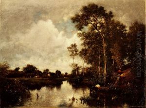 Jean-Baptiste-Camille Corot’s River Landscape embodies the poetic sensitivity of 19th-century French landscape painting, capturing a tranquil moment where nature and light harmonize. The work reflects Corot’s signature style—soft brushstrokes blending earthy tones with delicate silvery hues, evoking a dreamlike, almost ethereal atmosphere. Created during his mature period, it showcases his transition from classical training to a more evocative, proto-Impressionist approach, influencing later artists like Monet. Set against the revival of plein air painting, this piece represents Corot’s mastery in balancing realism with emotional depth, solidifying his role as a bridge between the Barbizon School and Impressionism. Today, it remains celebrated for its lyrical quality and subtle tonal variations, marking a pivotal moment in landscape art’s evolution.