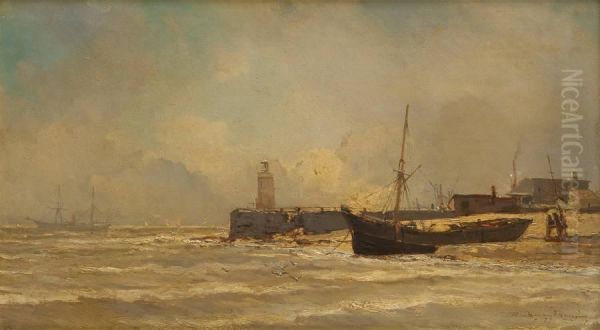 The painting Barque échouée sur fond de phare (Stranded Boat with Lighthouse in the Background) by Jean-Baptiste Henri Durand-Brager is a striking maritime scene that captures the dramatic tension between human frailty and nature’s overwhelming power. The 19th-century French artist, known for his naval-themed works, depicts a beached boat with the lighthouse looming in the distance—an evocative contrast between vulnerability and guidance. His Romantic-realist style blends meticulous detail with emotional depth, using stormy skies and turbulent waters to heighten the sense of isolation. Durand-Brager, a former naval officer, infused authenticity into his seascapes, making this piece a fine example of maritime Romanticism. While not as famous as works by Turner or Courbet, it holds significance for its historical accuracy and atmospheric storytelling, reflecting 19th-century Europe’s fascination with maritime adventure and peril.