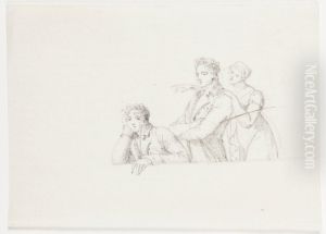 Jean-Baptiste Jacques Augustin’s En mor med sitt barn (A Mother with Her Child) is a tender and intimate portrayal of maternal affection, rendered with the delicate precision characteristic of French miniature portraiture in the early 19th century. The painting exudes warmth, capturing a quiet moment between mother and child with soft brushstrokes and a muted yet harmonious palette. Augustin, renowned for his refined technique and ability to convey emotion, elevates the subject beyond mere representation, infusing it with a timeless, universal quality. Historically, this piece reflects the Neoclassical era’s emphasis on idealized domesticity and emotional sincerity, bridging the gap between aristocratic portraiture and bourgeois sensibilities. Its modest scale and contemplative mood distinguish it within Augustin’s oeuvre, marking it as both a technical masterpiece and a poignant cultural artifact of its time.
