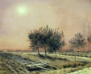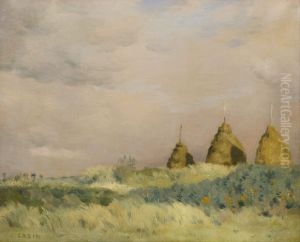Weite Sommerlandschaft Mit Heuhocke Und Einem Gehoft