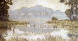 Jean-Francis Auburtin’s Landscape With Overgrown Pond (c. early 20th century) is a mesmerizing example of Symbolist landscape painting, blending poetic mysticism with Japonisme influences. The composition depicts a secluded pond enveloped by lush vegetation, where dappled light dances across the water’s surface, creating an ethereal, dreamlike atmosphere. Auburtin’s delicate brushwork and muted yet luminous palette—soft greens, earthy browns, and hints of shimmering blue—evoke tranquility and introspection. A lesser-known peer of Monet and Puvis de Chavannes, Auburtin bridged Impressionist techniques with Symbolist ideals, emphasizing nature’s spiritual resonance over realism. Though not as widely celebrated as his contemporaries, this work exemplifies the Nabis movement’s decorative elegance and remains a testament to Auburtin’s unique vision, positioning him as a subtle yet significant figure in fin-de-siècle French art.