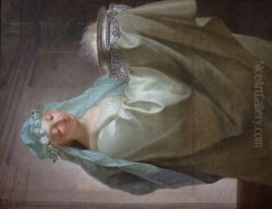 Portrait D'une Jeune Fille En Vestale Entretenant Le Feu Sacre