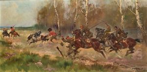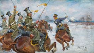 Bring the timeless beauty of Jerzy Kossak's Riders In Full Chase into your home with a handmade oil painting reproduction. Carefully recreated on canvas by skilled artists using traditional techniques, this piece captures the delicate brushwork, subtle light, and vibrant color of the original masterpiece. With museum-level quality and rich texture, it brings elegance and artistic depth to any space. Enjoy free shipping and make this masterpiece a part of your personal collection.