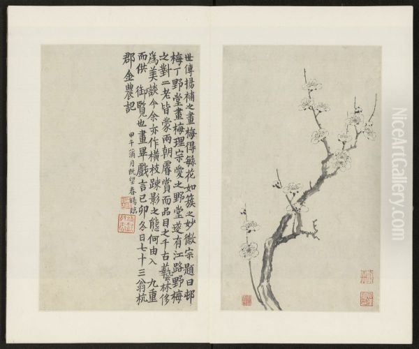 For those seeking to incorporate Jin Jun Ming Mei Hua Tu Ce into a living or workspace, its restrained yet evocative beauty makes it ideal for minimalistic, Zen-inspired interiors. Place it in a study or reception area to evoke sophistication and tranquility, complementing light wood furnishings and muted tones. A matte black or deep walnut frame would enhance its ink-wash elegance while allowing the delicate blossoms to remain the focal point. Given its likely vertical composition, a medium-large format (around 30–50 inches tall) would suit a feature wall or alcove without overwhelming the space. Pair it with celadon ceramics or a single branch arrangement to echo its natural motifs, ensuring the surroundings mirror the painting’s harmony and grace.