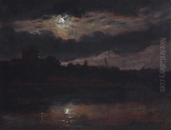 Johan Christian Clausen Dahl's Dresden by Moonlight (likely painted c. 1839) is a mesmerizing example of Romantic landscape painting, where the German city glows under an ethereal lunar light. Dahl, a Norwegian master often associated with German Romanticism, captures Dresden’s silhouette—the Frauenkirche dome, the Elbe River’s shimmer—with loose, expressive brushwork, contrasting the tranquility of night with the drama of looming clouds. The painting’s mood oscillates between poetic serenity and sublime mystery, hallmark traits of the era’s fascination with nature’s emotional power. As a pivotal figure in the Dresden Art Academy and a close friend of Caspar David Friedrich, Dahl bridged Nordic and German Romantic traditions, making this work significant for its technical mastery and its role in shaping 19th-century European landscape art. The luminescent treatment of moonlight, a recurring motif in Dahl’s oeuvre, reflects his scientific interest in atmospheric effects, later influencing the Düsseldorf School.