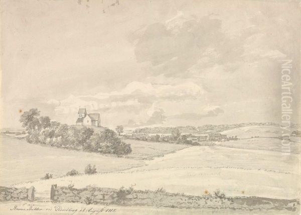 The painting Fra Bavnebakken ved Pedersborg, Soro by Johan Wilhelm Ludwig Dahl is a tranquil yet evocative landscape that captures the serene beauty of the Danish countryside. Dahl, a prominent Danish Golden Age artist, was known for his ability to infuse realistic detail with poetic atmosphere, and this work exemplifies his mastery of light and texture. The scene depicts a quiet hillside near Pedersborg, where soft sunlight filters through the trees, casting delicate shadows on the undulating terrain. The composition balances naturalism with a subtle romantic sensibility, characteristic of Dahl’s style, which bridged the transition from neoclassicism to early realism. His work holds a significant place in Nordic art history for its contribution to landscape painting, offering both topographical accuracy and emotional resonance. The subdued palette and meticulous brushwork invite viewers into a meditative experience, making it a timeless representation of Denmark’s pastoral charm.