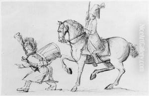 The painting Ryttmastare Carl August Tamm Pa Fogelsta by Johan Georg Arsenius is a striking example of 19th-century Swedish portraiture, radiating aristocratic elegance and quiet authority. Arsenius, a prominent artist of the Romantic era, captures Ryttmastare (Cavalry Captain) Carl August Tamm in a moment of composed dignity, dressed in military regalia against a muted yet atmospheric backdrop of his estate, Fogelsta. The artist’s meticulous attention to detail—rich textures of fabric, the gleam of polished boots, and the subtle play of light—imbues the work with lifelike presence. Stylistically, it reflects the Romantic movement’s fascination with heroic individualism and pastoral nostalgia, while its precision aligns with academic portraiture traditions. Historically, Arsenius’s works, including this one, are valued for documenting Sweden’s noble heritage and bridging neoclassical formality with emerging Romantic sensibilities.
