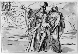 Le pere remet son fils entre les mains de Minerve pour le conduire au temple de la Vertu