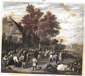 Interior With Elegant Figures In Masquerade Costume Feasting